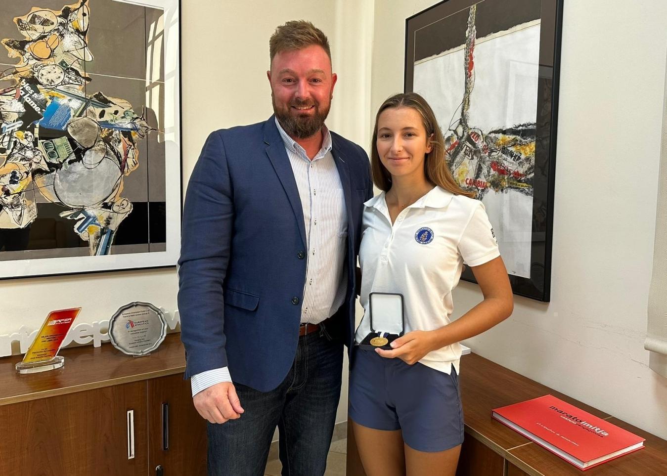 Castellón, 29 de agosto de 2023. El diputado provincial de Deportes, Iván Sánchez, ha recibido a la golfista Rocío Tejedo. La deportista de Castellón y de la Federación de Golf de la Comunitat Valenciana jugará con el equipo Europeo la JR Ryder Cup y entre sus numerosos éxitos destaca el Internacional de Portugal, el Campeonato de Alemania, la Medalla de Oro del Campeonato Europa sub-18 por equipos o la Medalla de Bronce en la Copa SM La Reina.